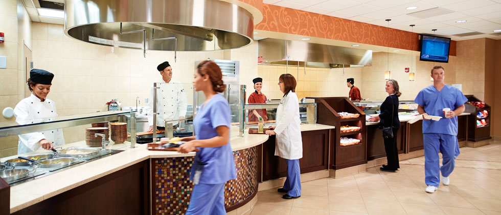 When most of us think of "hospital food," we think meatloaf and Jell-O -- basically bland, tasteless, and not particularly healthy. Traditionally, the hospital was someplace where you had to eat, not a place where you would choose to eat. And the cafeteria was mainly a place for time-challenged staff and distracted guests to eat quickly and inexpensively.